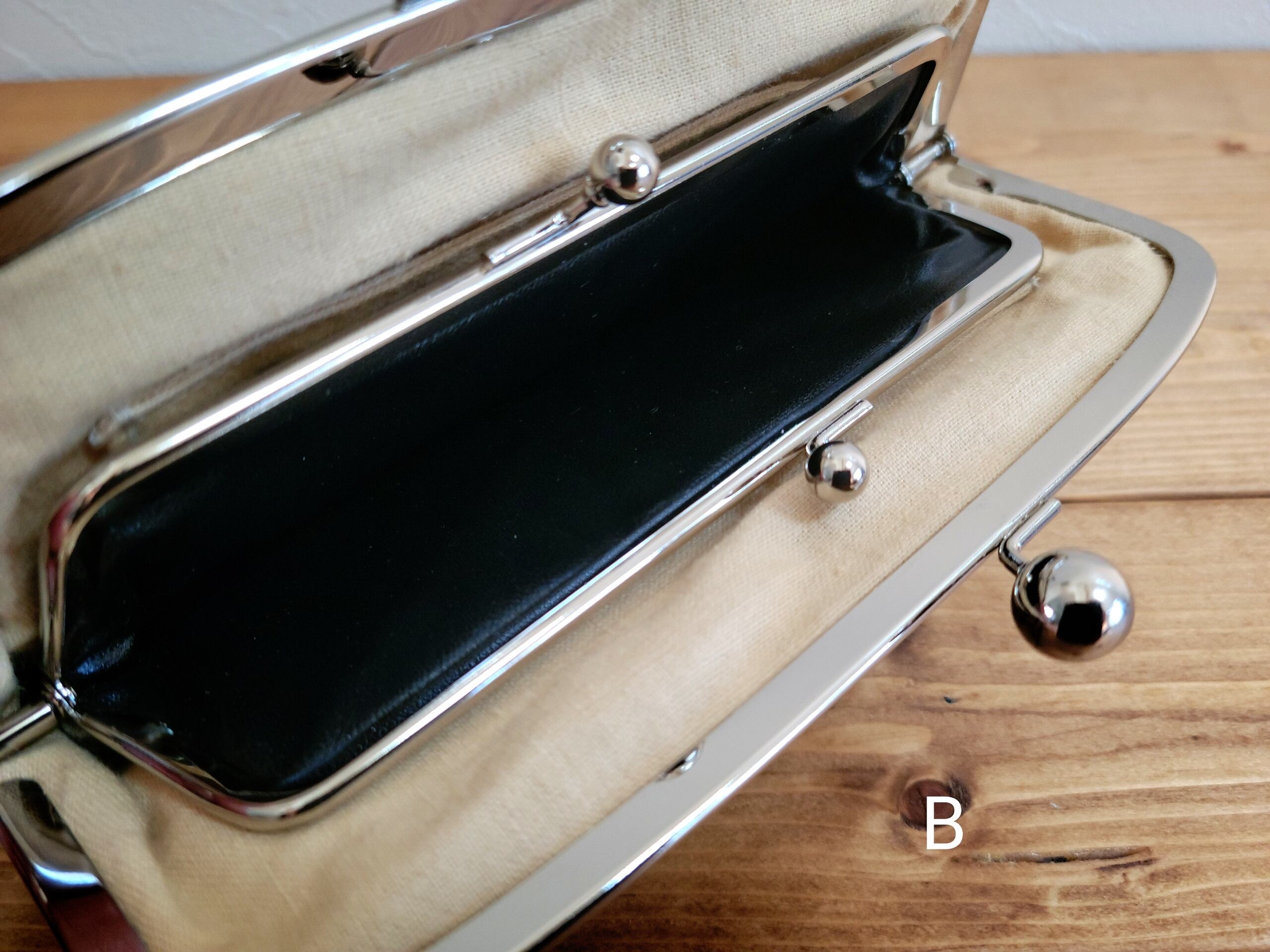 子がま口の内生地はレザー風で、汚れが目立ちません。